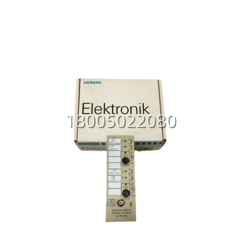 在西门子SIMATIC S5这个传奇家族的“高速驱动”序列中,6ES5453-8MC12 绝对是个“特种兵”。作为一款专为S5-155U和S5-155H设计的高速晶体管输出模块,它彻底打破了普通IO模块只能处理低频开关信号的局限。在那个PLC扫描周期还以毫秒计的年代,6ES5453-8MC12 凭借自带的硬件脉冲生成能力和极速电子开关,实现了微秒级的信号响应。无论是伺服电机的使能控制、步进电机的脉冲串发送,还是高速液压阀的精准启闭,它都能精准执行,一个脉冲都不丢。