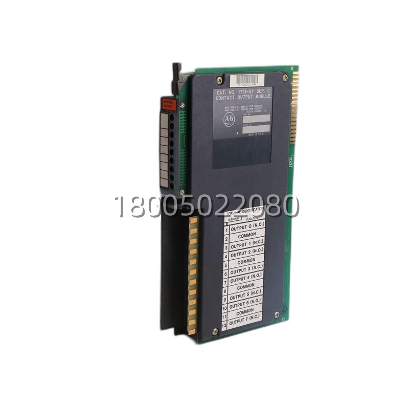 在 PLC-5 系统里,当你的输出点需要直接驱动一个交流接触器、一个小型电磁阀,或者一盏 120V 的指示灯时,1771-OY 这种继电器输出模块就是典型选择。它内部是 8 个独立的微型继电器,每个继电器都有一组“转换触点”(常开、常闭、公共端)。这种“干触点”输出,最大的好处是负载隔离和电压灵活——你的 PLC 背板是 5V/24V 的直流逻辑电,但通过这组触点,你可以安全地去控制 120V 的交流电回路,两个世界完全分开。